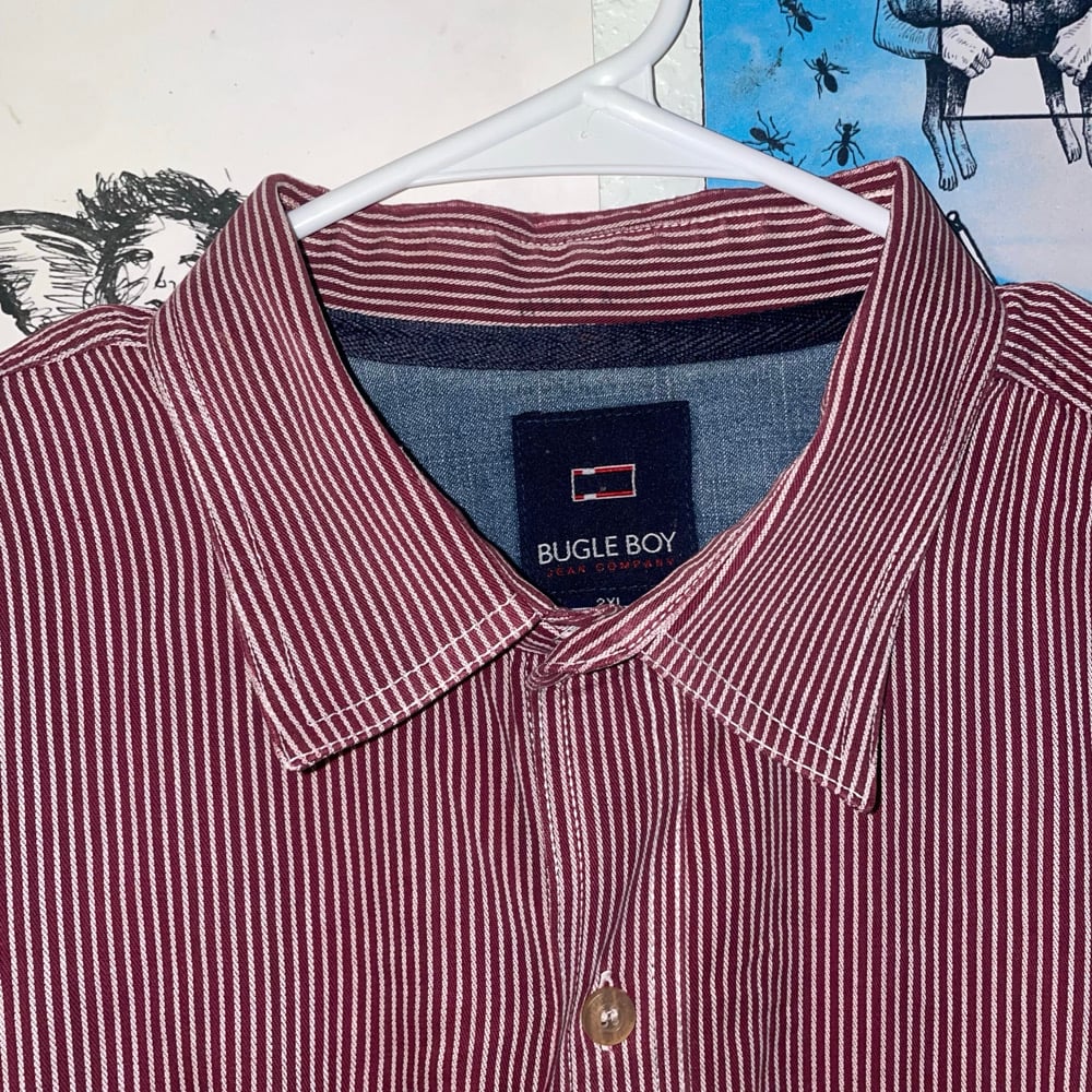 hot sex red pin stripe button up shirt XXL